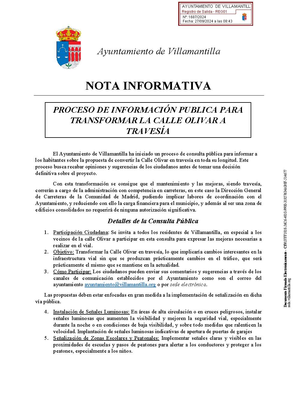 Proceso de consulta pública para informar sobre la propuesta de convertir la Calle Olivar en travesía